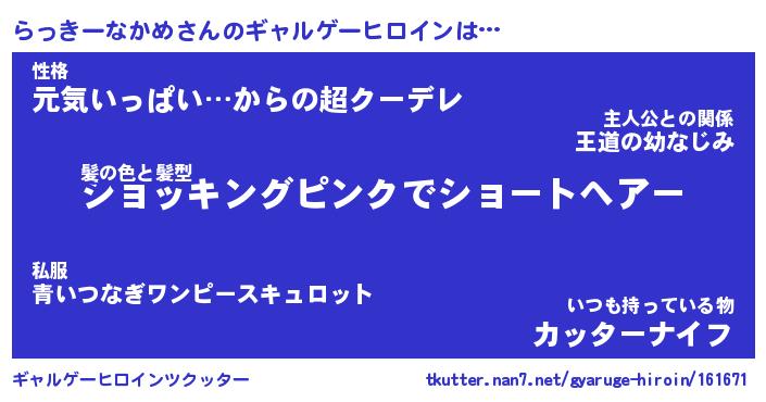 | 男性向けラノベタイトル風あだ名 | 『らっきーなかめの憂鬱』 |