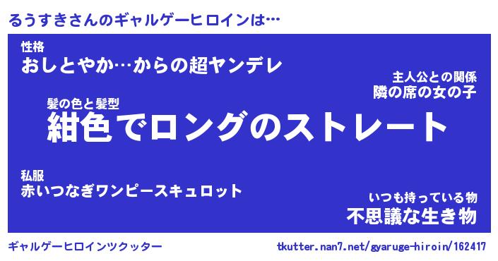 | ファンタジー風あだ名 | 『ルウフェル』『エターナルルウスキー』 |