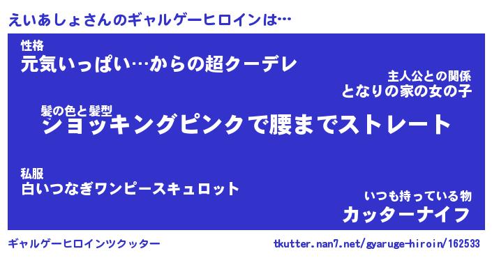 | 男性向けラノベタイトル風あだ名 | 『えいあしょの憂鬱』 |