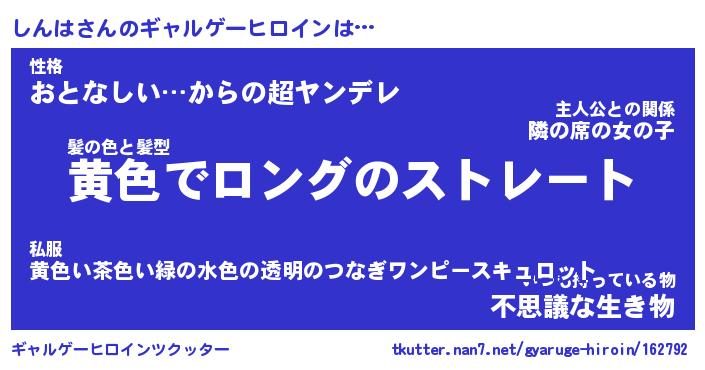 | ヘコむあだ名 | 『しんにゅー』『なまこ酢』『しんを』 |