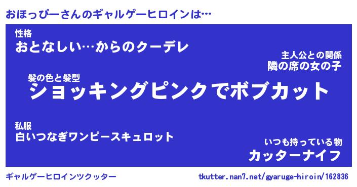 | 男性向けラノベタイトル風あだ名 | 『おほっぴーの憂鬱』 |