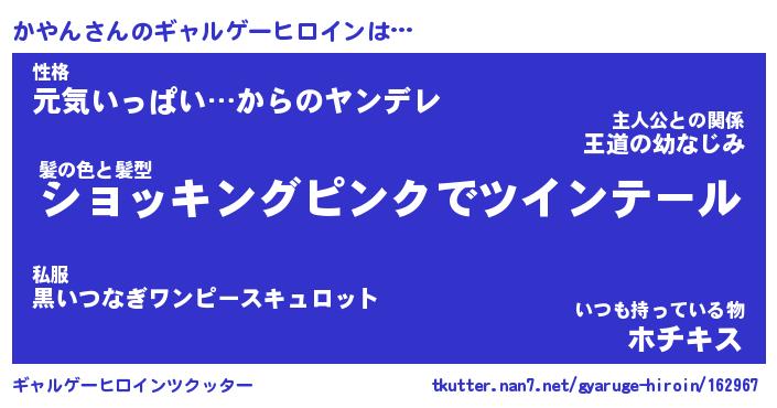 | ファンタジー風あだ名 | 『カヤフェル』『エターナルカヤンー』 |