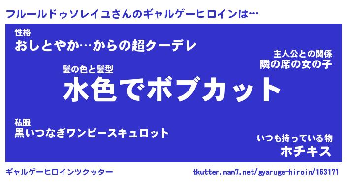 | 男性向けラノベタイトル風あだ名 | 『フルールドゥソレイユの憂鬱』 |