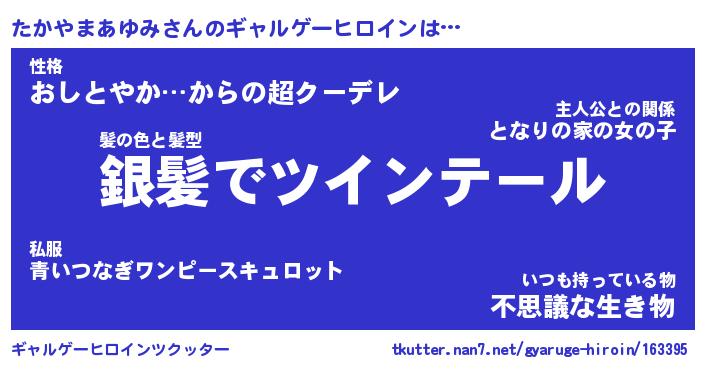 | 肩書あだ名 | 『たかやまあゆみ御曹司』 |