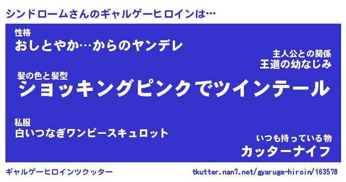 | 男性向けラノベタイトル風あだ名 | 『シンドロームの憂鬱』 |