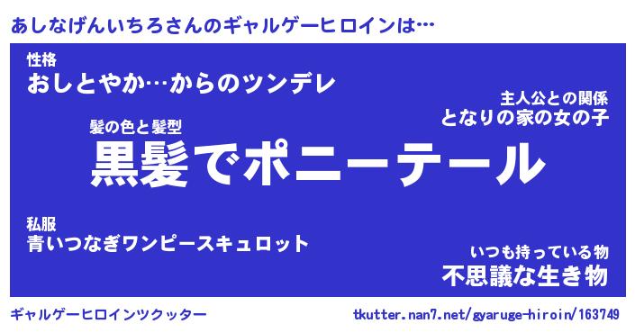 | 意味不明あだ名 | 『ペロリンあしなげんいちろ』 |