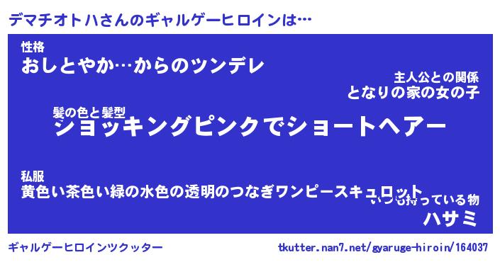 | ヒーロー風カッコイイあだ名 | 『スーパーデマチオトハ』『暗黒騎士デマ』 |