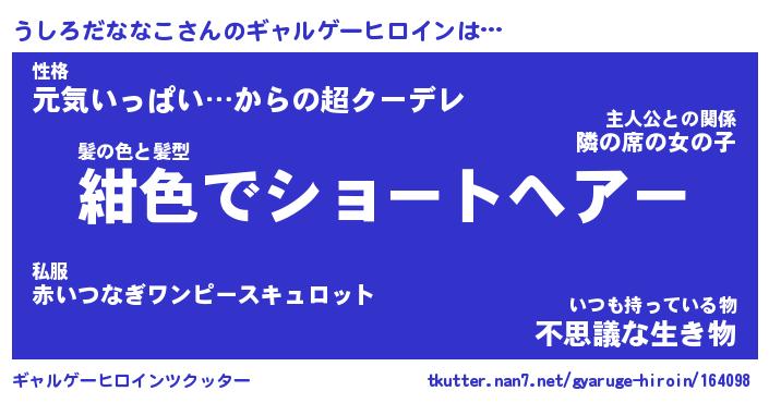 | 伝説のあだ名 | 『封印されしスナイパーうしろだななこ』 |