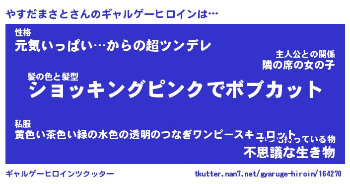 | 女子向けラノベタイトル風あだ名 | 『(仮)やすだまさとのやんごとなき事情』 |
