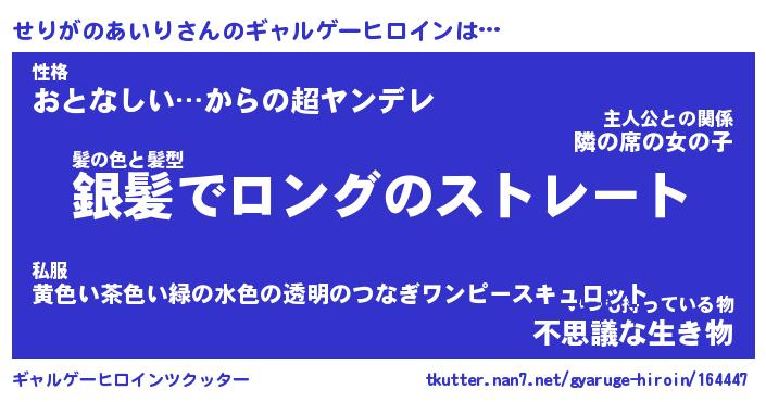| 胡散臭い通販商品みたいなあだ名 | 『モテモテ間違いなしブレスレット…その名も「せりがのあいり」』 |