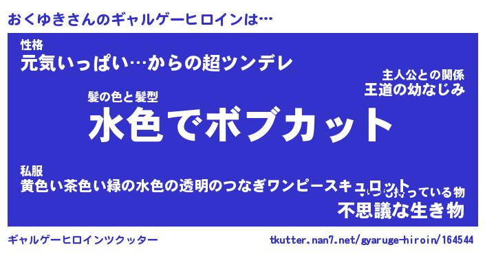 | 男性向けラノベタイトル風あだ名 | 『おくゆきの憂鬱』 |