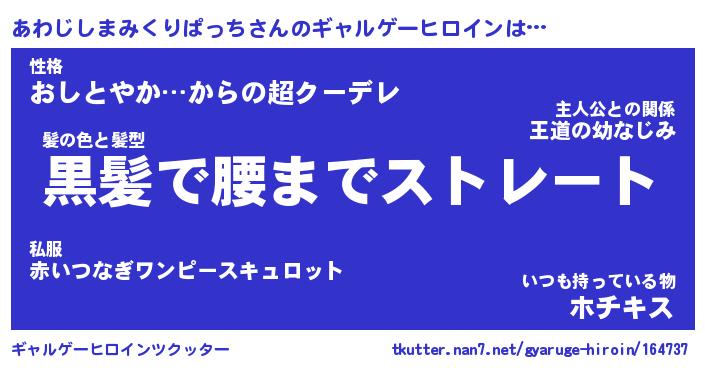 | 女子向けラノベタイトル風あだ名 | 『あわじしまみくりぱっち姫と円卓の騎士』 |