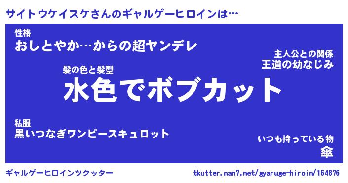 | 女子向けラノベタイトル風あだ名 | 『(仮)サイトウケイスケのやんごとなき事情』 |