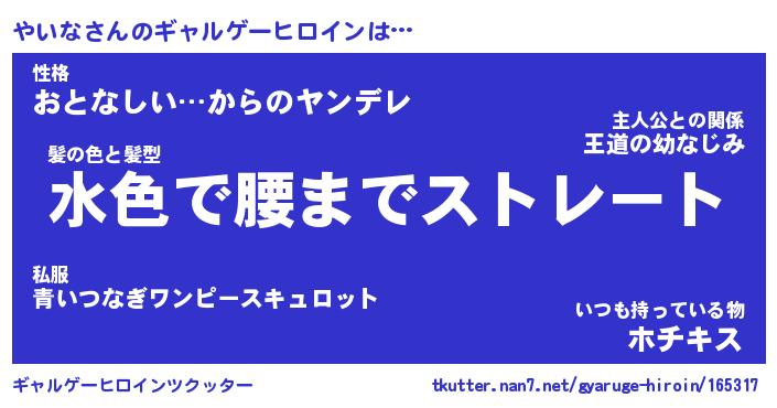 | ファンタジー風あだ名 | 『ヤイフェル』『エターナルヤイナー』 |