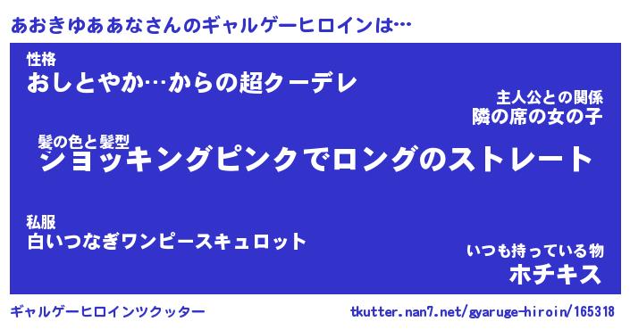 | 女子向けラノベタイトル風あだ名 | 『(仮)あおきゆああなのやんごとなき事情』 |