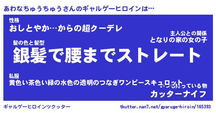 | 女子向けラノベタイトル風あだ名 | 『あわなちゅうちゅう姫と円卓の騎士』 |