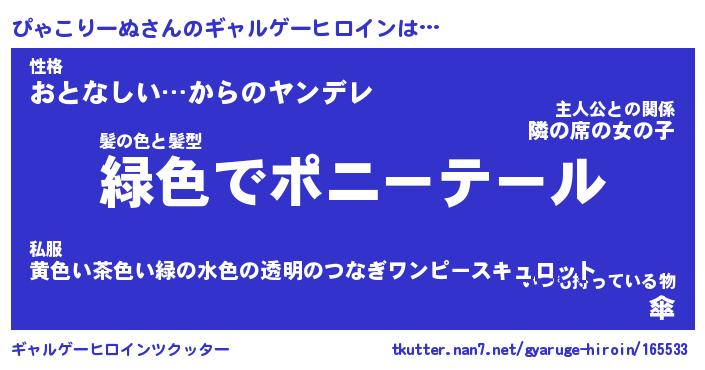 | ツイッター | ぴゃこりーぬさんのツイッターID『dendenmushi_kun』 |