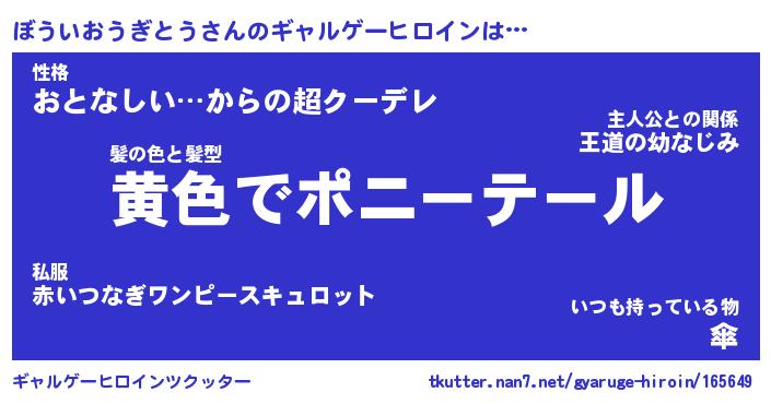 | ヘコむあだ名 | 『ぼうにゅー』『つくし』『ぼうを』 |
