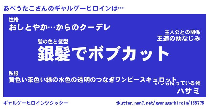 | 女子向けラノベタイトル風あだ名 | 『あべうたこ姫と円卓の騎士』 |