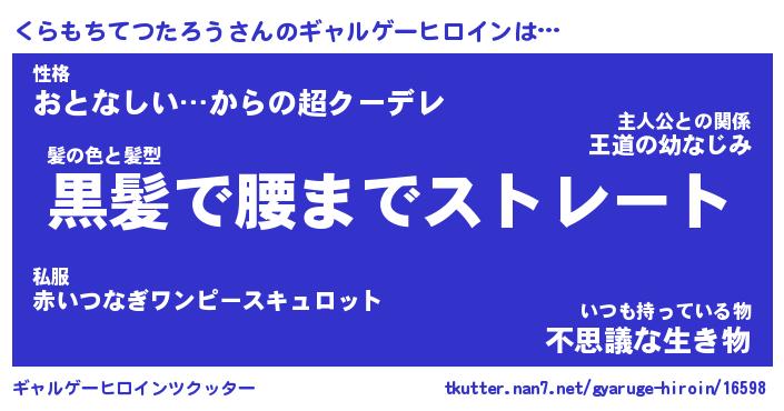 | 男性向けラノベタイトル風あだ名 | 『くらもちてつたろうの憂鬱』 |