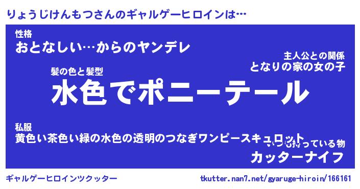 | 男性向けラノベタイトル風あだ名 | 『りょうじけんもつの憂鬱』 |