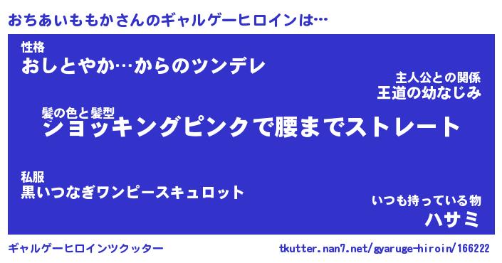 | 胡散臭い通販商品みたいなあだ名 | 『必ず成功する霊験あらたかなお札…その名も「おちあいももか」』 |