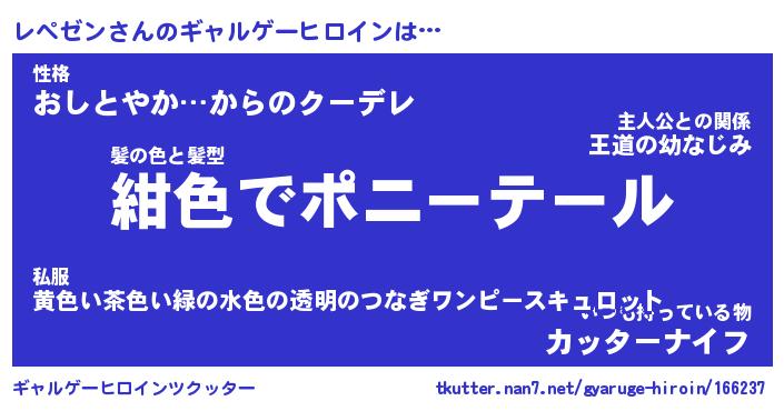 | ヘコむあだ名 | 『レペにゅー』『牛乳』『レペを』 |