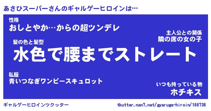 | 女子向けラノベタイトル風あだ名 | 『(仮)あさひスーパーのやんごとなき事情』 |