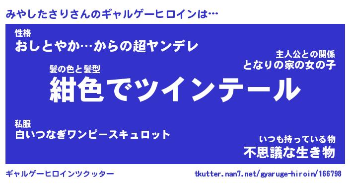 | ファンタジー風あだ名 | 『ミヤフェル』『ファントムミヤス』 |