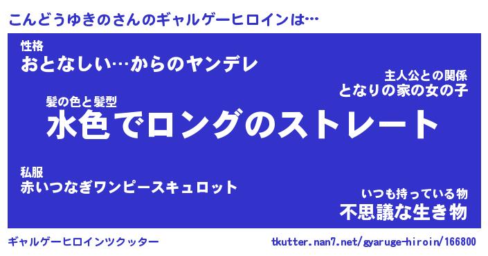 | 男性向けラノベタイトル風あだ名 | 『こんどうゆきのの憂鬱』 |