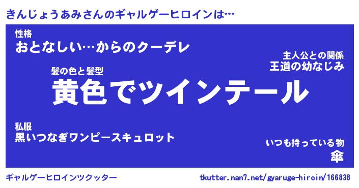 | 男性向けラノベタイトル風あだ名 | 『キンジョウアミアートオンライン』 |