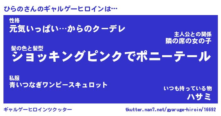 | 女子向けラノベタイトル風あだ名 | 『(仮)ひらののやんごとなき事情』 |