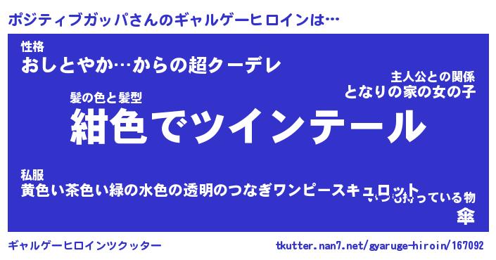 | 男性向けラノベタイトル風あだ名 | 『ポジティブガッパアートオンライン』 |