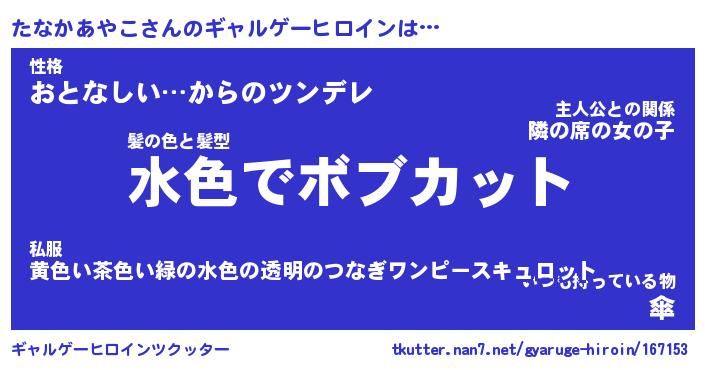 | 男性向けラノベタイトル風あだ名 | 『たなかあやこの憂鬱』 |