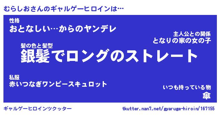 | 男性向けラノベタイトル風あだ名 | 『むらしおの憂鬱』 |