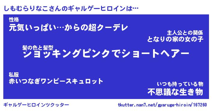 | 伝説のあだ名 | 『伝説の竜騎士しもむらりなこ』 |