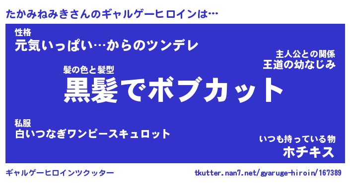 | 恥ずかしいあだ名 | 『プリティーたかみねみき』『たかっちょ』 |