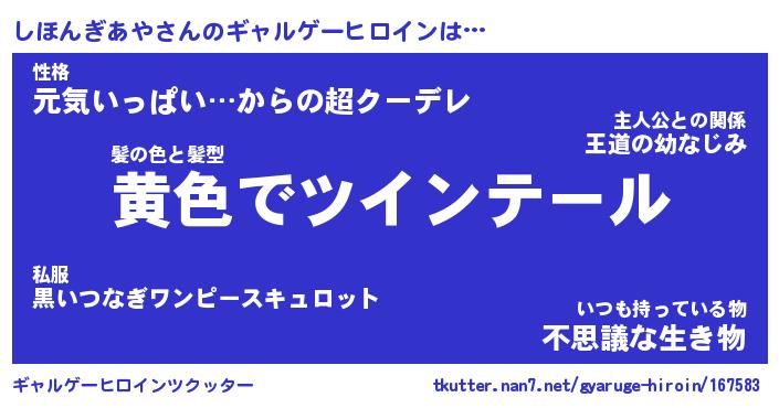 | 肩書あだ名 | 『しほんぎあや御曹司』 |
