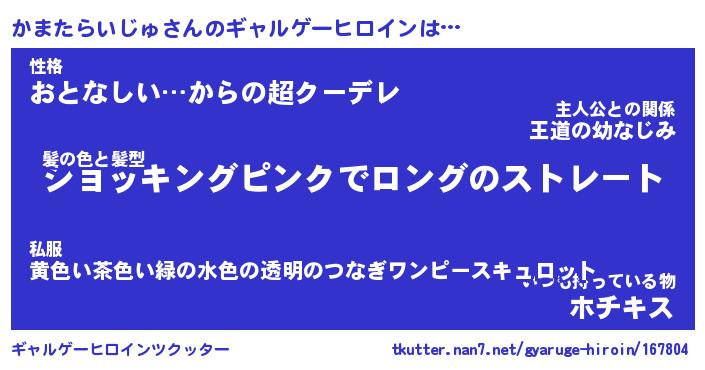 | 肩書あだ名 | 『かまたらいじゅ社長令嬢』 |