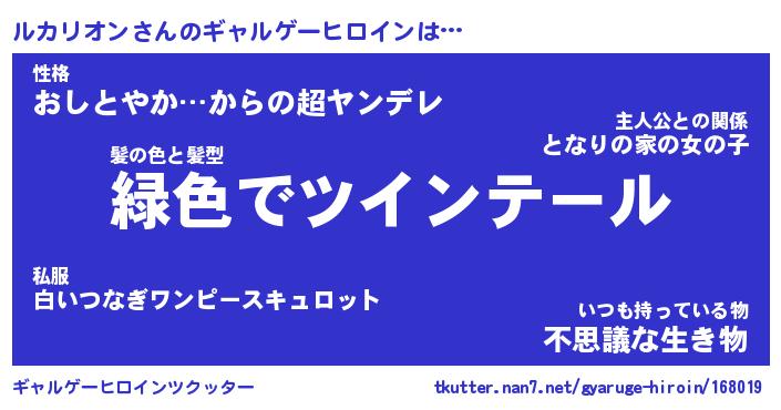 | ファンタジー風あだ名 | 『ルカフェル』『エターナルルカリオンー』 |