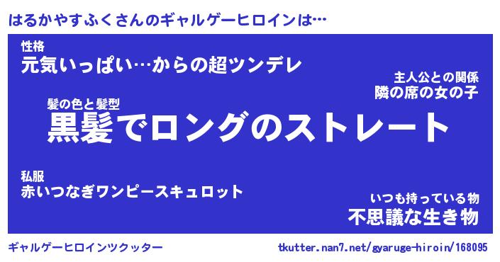 | 男性向けラノベタイトル風あだ名 | 『はるかやすふくの憂鬱』 |