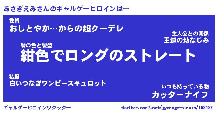 | ファンタジー風あだ名 | 『アサフェル』『エターナルアサギエミー』 |
