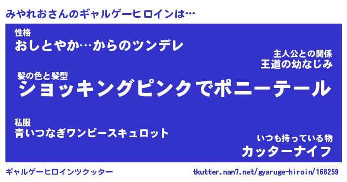| ヒーロー風カッコイイあだ名 | 『スーパーミヤレオ』『魔戒騎士ミヤ』 |