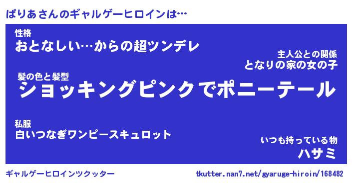 | 意味不明あだ名 | 『ペロリンぱりあ』『ぱりあフォーエバー』 |