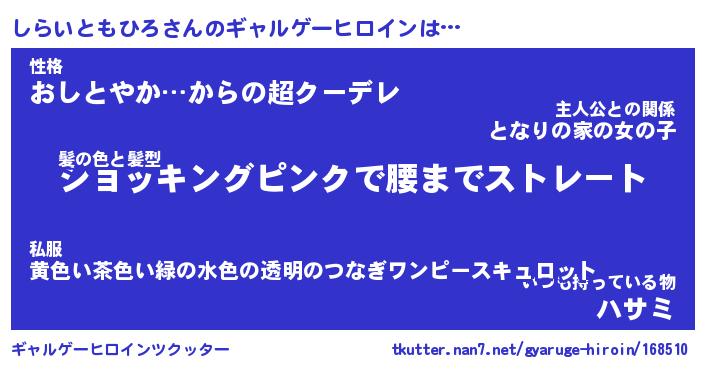 | 女子向けラノベタイトル風あだ名 | 『(仮)しらいともひろのやんごとなき事情』 |
