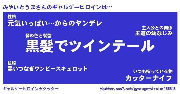 | ヒーロー風カッコイイあだ名 | 『スーパーミヤイトウマ』『黄金騎士ミヤ』 |