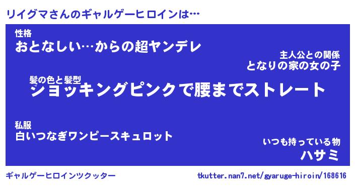 | ポケモン風あだ名 | 『リイチュウ』『リイグダネ』 |