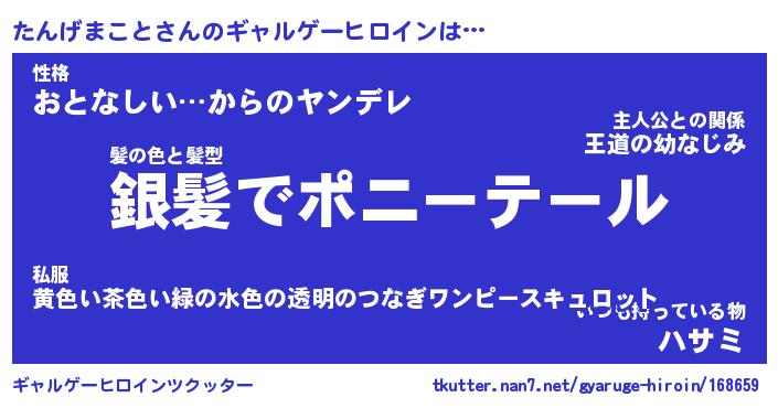 | 男性向けラノベタイトル風あだ名 | 『たんげまことの憂鬱』 |