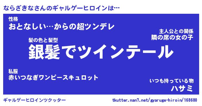 | 男性向けラノベタイトル風あだ名 | 『ならざきなの憂鬱』 |