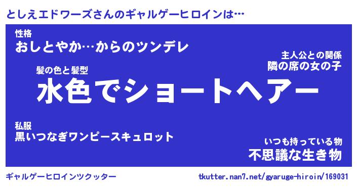 | 女子向けラノベタイトル風あだ名 | 『(仮)としえエドワーズのやんごとなき事情』 |